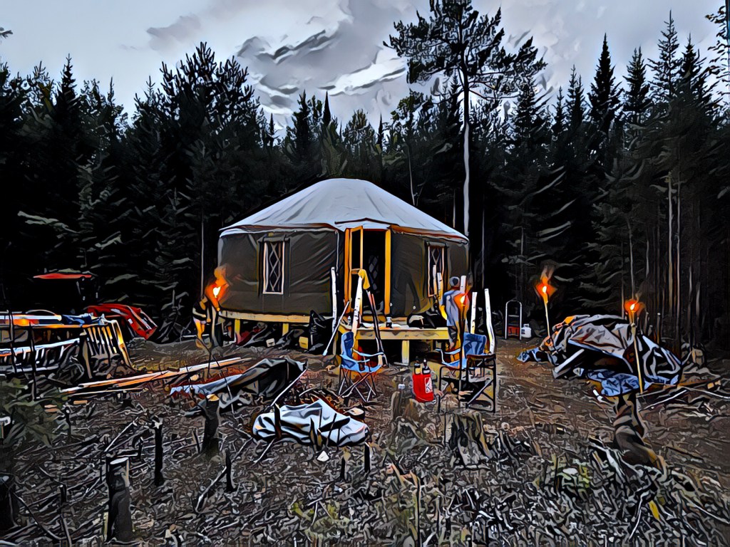 What Cyrus Lee Hancock and Machine-Gun Sally intend with their large chunk of wilderness is a self-sustainable town which can weather it all: climate change, social upheaval, zoonotic contagions, zombies, hippies, the United Nations, TikTok. They named their town William Wallace, after the Scotsman who sought freedom from imperial rule. They cleared the land. Then they built a yurt. A village needs to start somewhere. I arrived to help situate the yurt, the cornerstone of William Wallace Township, where Cyrus Lee and Emgeez were to live with their umpteen dogs and, apparently, an uninvited guest in the guise of a demon moose who eats beaver even though it cannot digest fur.