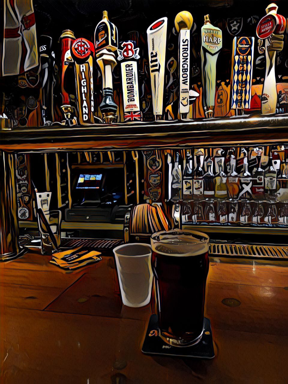 Ugh, the square. A pint of Guinness for me. And for madame, a Smithwicks.
