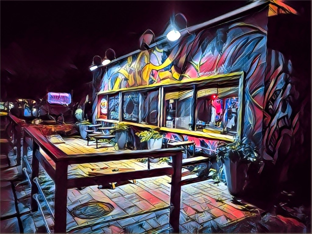 Inside, the dive is dim. Double doors open to a tomb, allowing dull beads of gray afternoon to drip across the threshold. The pale light falsely teaches pupils there is an alternative to darkness. There isn’t. Not really. Dilated pupils within belong to crypt dwellers, dwelling amidst the air-con-stirred smell of pickled jalapeños, stale hookah and the fire-singed hair of last night’s juggler… (alas, poor Tim). At a card-table, there is a tobacco-stained yellow-mustachioed yeoman tuning banjos. In the center of the room, a contortionist in a cheetah-spotted leotard stretches ahead of her next performance. At the bar, a trio of washed-out gutter zealots in faded dyed-hair & torn tour-shirts sip energy-drinks with tattooed fingers and order two tacos to share amongst them. One of the three is surely named Shane. Maybe more than one. And it is an understated house rule: whomever is named Shane is invariably attempting to deal drugs. Not the FDA approved wonder-pills the alchemist peddles, but the common street dopes filled with rat poison, fentanyl, oregano, refried cookie dough, dried tiger dick, whatever it takes. Behind the bar, a high-priestess is building tacos to order. The scent of beefy cumin leaves one hungry-curious…