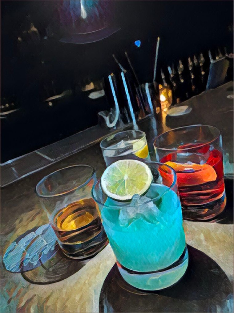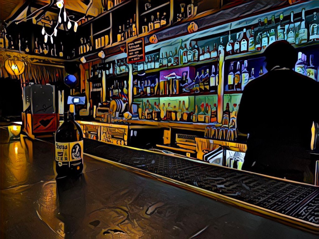 …sure. What the hell? I go to the bar and order a non-alcoholic beer. They do not have any. Naturally. I order soda water on ice. I return to find Zelda on my stool. You’re not cold?, I ask Zelda, referencing her bare feet in soccer sandals. With a smile, Zelda tells me she lives upstairs. And then she closes her eyes. I believe it was intended as a wink, but her eyelids were too heavy for the quick maneuvering. She grasps the tabletop as if requiring leverage to open her eyes. She elaborates, telling us she came downstairs to the bar to check her mail. Bruno leans forward with interest, is Arnie a mailman? No, but!, Zelda says with sudden alertness, my dad knows to send my mail here.