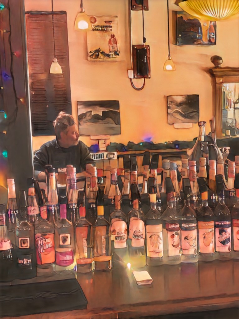 We aren’t spies, Yvonne says, we just like a good bar. Y’know the Colorado term “peak bagger”, Howard?, she asks. It is a mountaineer who is collecting 14,000’ summits like their brownie points. Well, my brother, Vic, he is a “dive bagger”. He goes around the world collecting dive bars. Howard nods at this, saying, well, Holiday Bar looks like a dive bar because we like to keep it comfortable. But this is no dive bar. Look at the bar top. That is the finest slab of Colorado granite you will find this side of Capitol Hill. Yvonne and I act impressed at the stone bar. Ooh, we say.