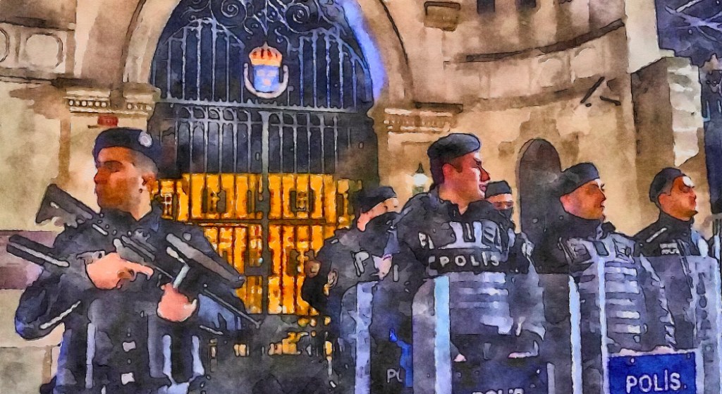The streets of the Karaköy neighborhood were lined with riot police. Batons. Protective face masks. Shields stamped “POLIS”. They had setup barricades. This was a good thing. The police were monitoring the situation, not yet attempting to disperse. Perhaps they were more concerned with guarding the store fronts of this commercial district. But any spark could set off this powder keg.