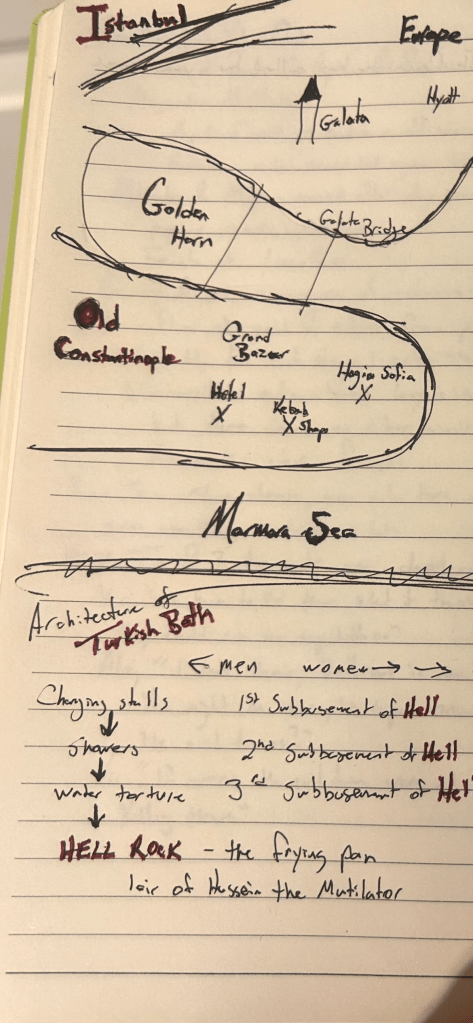 Pepe Rosso is a boozy little Italian bistro where I wiled away the hours waiting on Diana’s call. The first negroni was very strong; I pivoted to Efes, a Turkish beer. No word from Diana. I had a second negroni. Still no word from her. Enough. I left the bistro for the tram station to find passage south, back to Old Constantinople. Diana, I figured, could find her own damn way back. Or stay with at the Hyatt with Dantés St Pierre for all I fucking care.