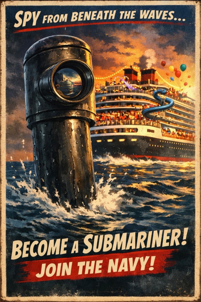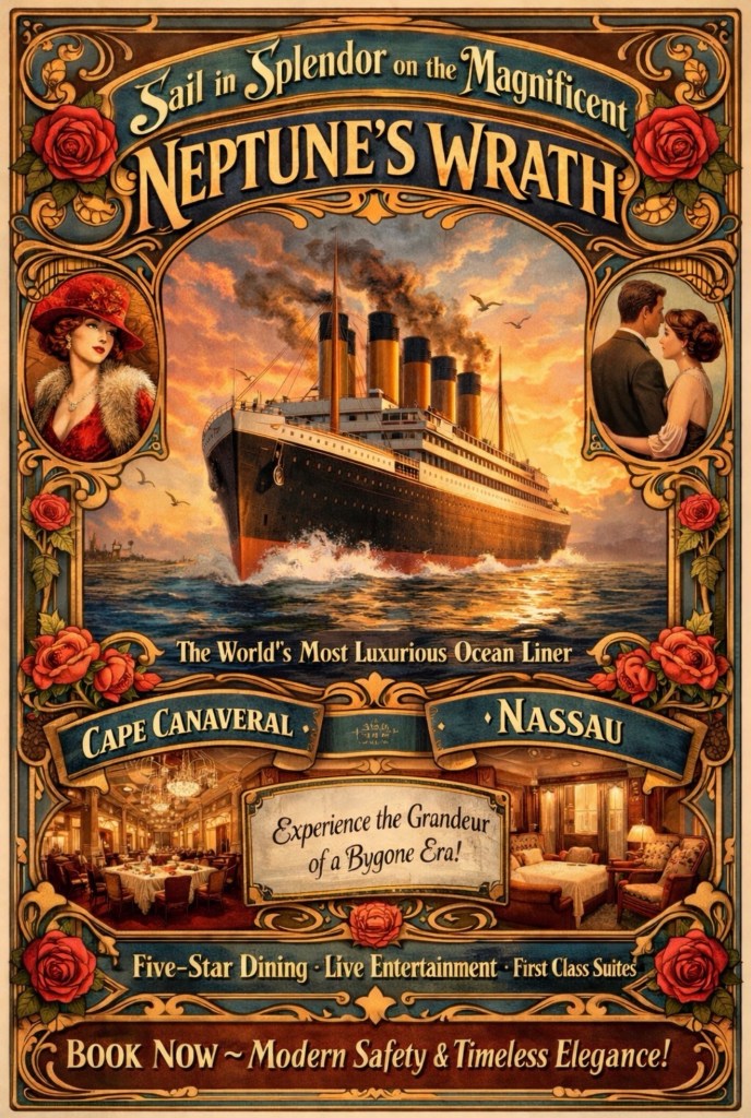 Speaking of disaster!, Bradford Adams, GMF said gaily, these massive cruise ships are built so top heavy they are reliant on stabilizers to keep right-side up. If, for whatever reason, we run out of fuel or let’s say we get hit by an electromagnetic pulse from a solar flare or a Soviet satellite like in Golden Eye and we lose power, the stabilizers cannot keep us upright and we’ll flip. Poseidon Adventure level calamity, bro. Bradford Adams, GMF, then nodded to my sleeping mother-in-law and said, good luck helping her out.