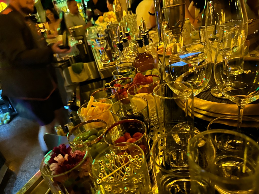 After some time, bathed in the surrounding noises of imbibe, her drink arrives and is immediately (and lovingly) placed near the printout of her tab for an extensive photo shoot. It is a fetching sight to be fair; purple, with a flower garnish and elegant ice cubes. She abruptly transitions control of her face to joy when I tell her so, snapping another shot from a different angle while telling me it is an off menu order she just loves. The base is mescal. I’d probably love it too. Surprisingly, she offers me a taste, and equally surprisingly, I decline it, and wish her well as I take her position in line to look out for the next passing barkeep. That was unusual and generous I think, looking up. The ceiling is made of glass windows. The pigeons above must observe the many lines sprocket out from the bar like arms of a giant octopus. And these drinks would be like gleaming treasures to be gathered for his garden. Like such a kraken might greedily carry armfuls of trinkets from an abandoned lost and found, the served return to their parties carrying multiple drinks. The crowd and the wait warrants sending one person up for the table. I am the sacrifice. And I am one thirsty tentacle.