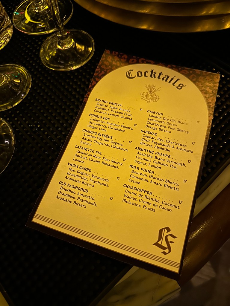 But what about you? You travel. Plus, you have charisma and of course hot takes. An adequate sense of humor. Are you one of the gorgeousess’? Do you find yourself in San Diego? Had your fill of surfing, fish tacos, and the dog beach and are now looking for an adequate backdrop to match your radiating aura of prestige? Well, if so, you are in luck, for there is a destination bar at a luxury hotel called the Lafayette. And I can tell you a little about it. If you go, you may fully anticipate your fancy to be tickled pink, but be not surprised if you are straight titillated rouge before the night is over. Upon entering, you are bathed in the dim ambiance of crystal diffused light and floral velvet cushions. You would have to go no further than this front lobby to find a suitable roost, though there are plenty of other attractions to venture too. So, shun distraction. Go further on! Deeper, past the coffee bar and the side hallways and stairwells competing for your attention.