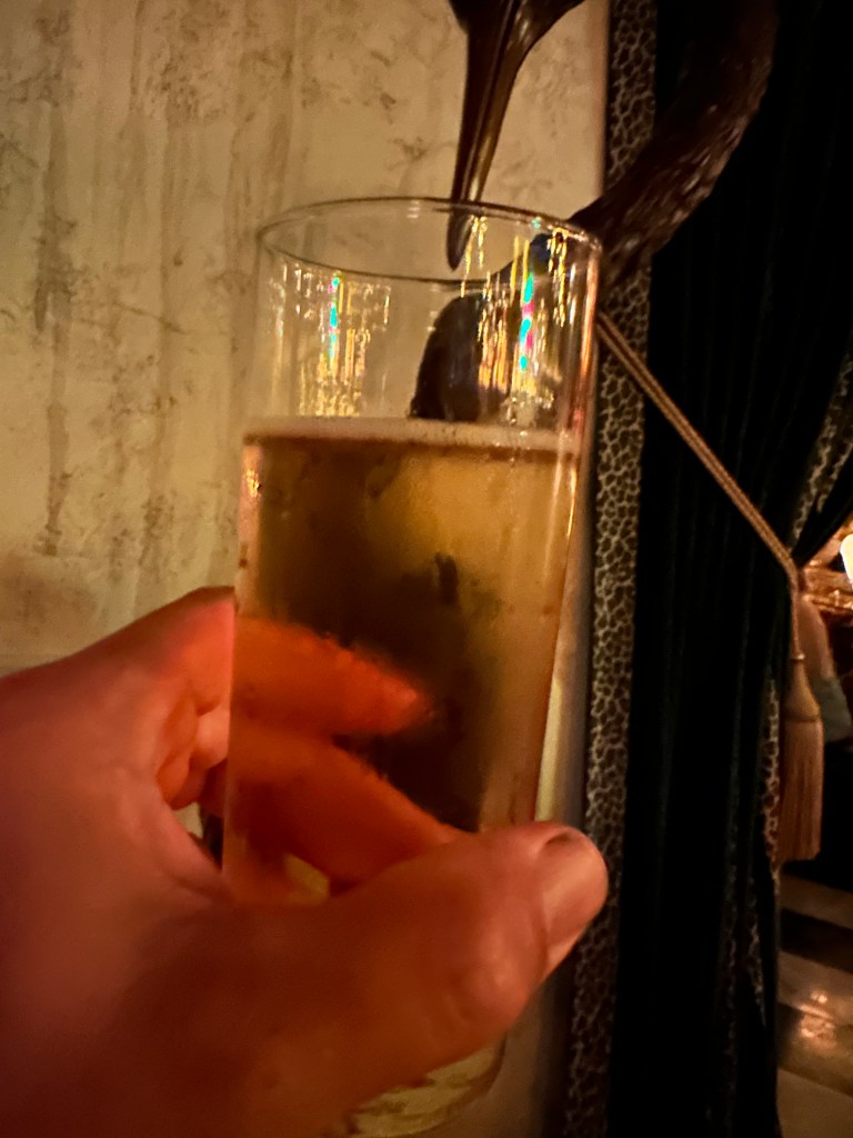 Shelly, my uncle’s wife, has been inspired to photograph her beverage, a Milk Punch. Sometimes you have to document these things, she says with a gleaming smile. Her social media is filled with happy experiences, loved ones, and delicious foods. The inside out philosopher in my brain wonders what the optimal balance is between the extreme of staying 100% in the moment and the influencer’s extreme of using every outing as content to document, edit, and promote. Shelly seems to have a good mean going, but could she resist the offer of monetizing her feed with ads?, lol. I actually scoff at the simple evolution of it all, lost in the thought when my uncle elbows me and asks “you good dude? They slip some absinthe in your lager?”